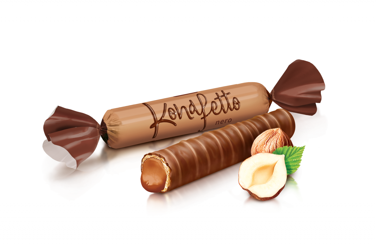 Chocolate-covered wafer rolls with cream filling and hazelnut flavor.